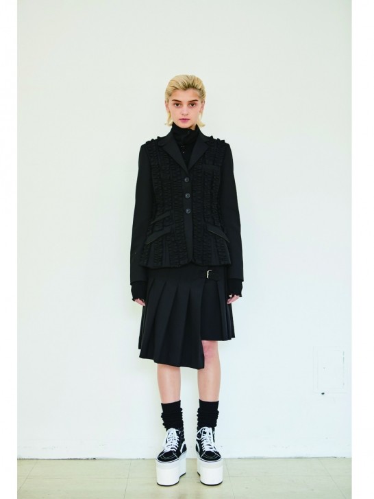 • 비대칭 포켓 디테일과 적당한 핏 감의 3버튼 재킷으로 앞면에 셔링 디테일이 들어간 유니크한 디자인