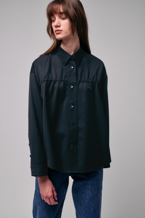 • 히로인 Shirring Wool Shirts (NAVY) HEROINE