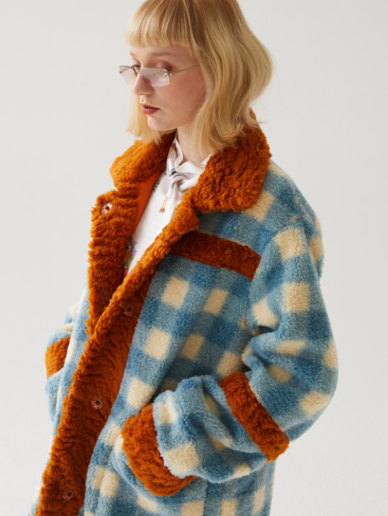 • 라펠과 몸체의 배색이 예쁜 비건퍼 코트