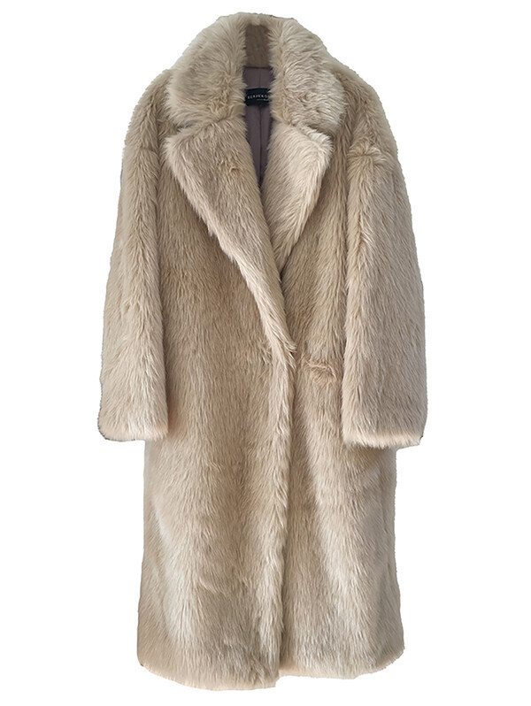 • 오버사이즈 핏으로 넉넉하게 입는 스타일의 고급스러운 애쉬톤 장모 에코 퍼 코트