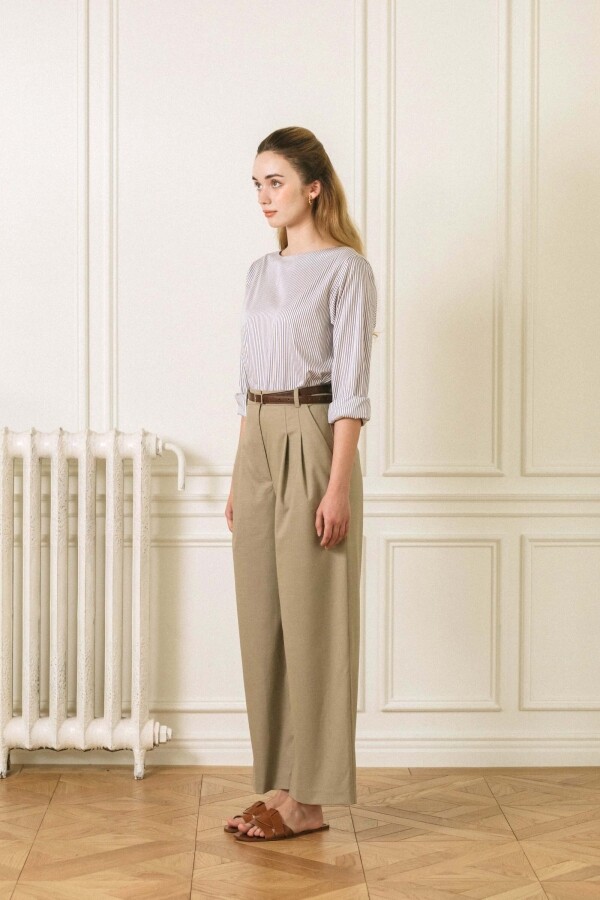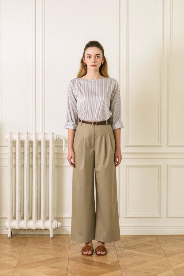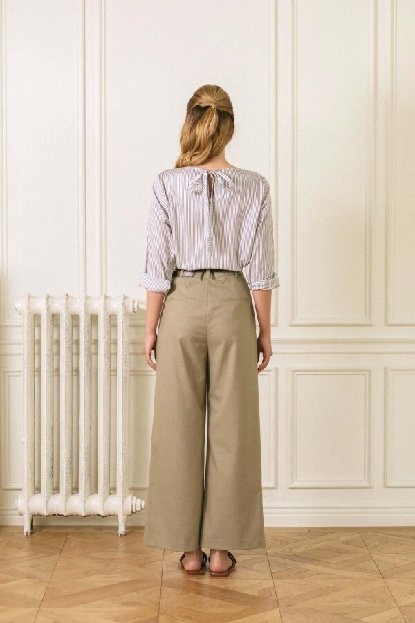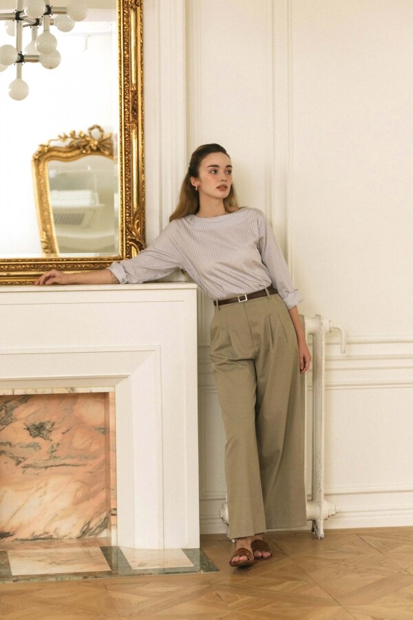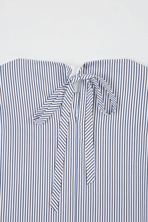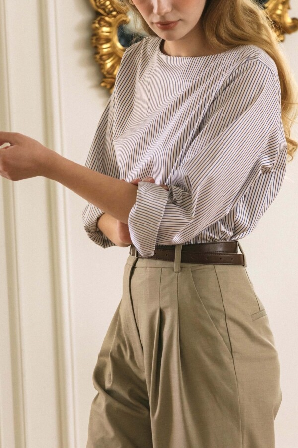 • 심플하면서도 러블리한 백리본을 포인트로 한 보트넥 블라우스입니다. 이태리 3대 명품 셔츠 원단 브랜드인 Canclini의 원단을 사용하였습니다. 국내 원단에서는 느끼기 어려운 우아하면서도 유니크한 발색감을 느끼실 수 있습니다. 두가지 색상의 스트라이프 컬러가 어우러져 차분하면서도 유니크한 디자인이 특징입니다. 뒷면에 위치한 리본은 자연스럽게 풀어서 연출하거나 묶어서 러블리하게 연출 가능합니다.