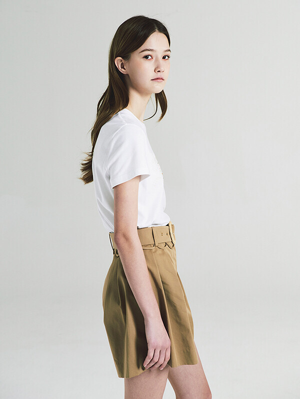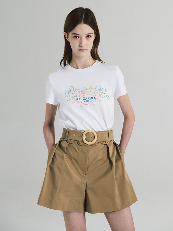 • 플로럴 프린트와 크리스털 스톤이 돋보이는 반팔 티셔츠