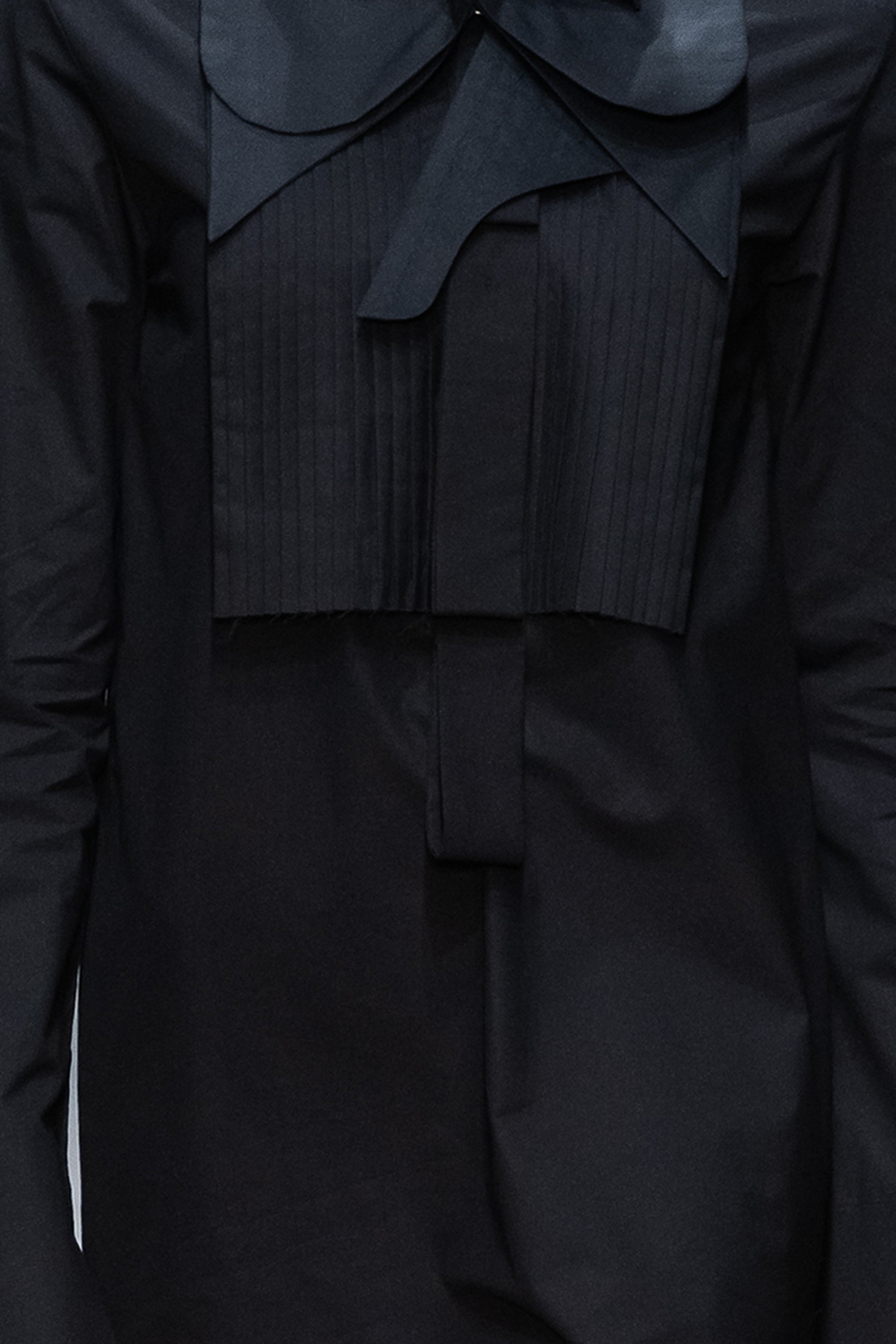 칼라, 앞여밈, 커프스, 소매 주름, 밑 단 등의 매혹적인 커팅이 특징입니다.