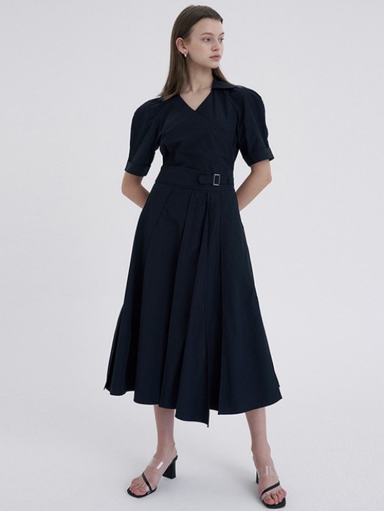 • 브로우엔드 BINDING FLARE DRESS (NAVY)
