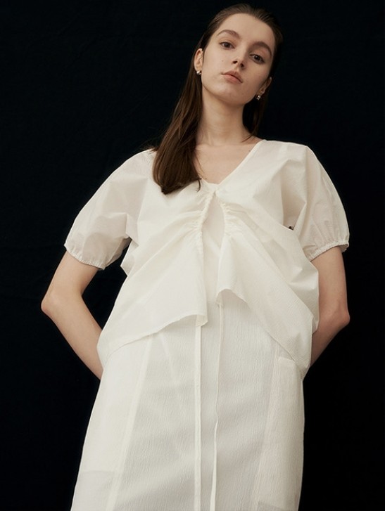 • 브로우엔드 TWO WAY SHIRRING CARDIGAN (WHITE)