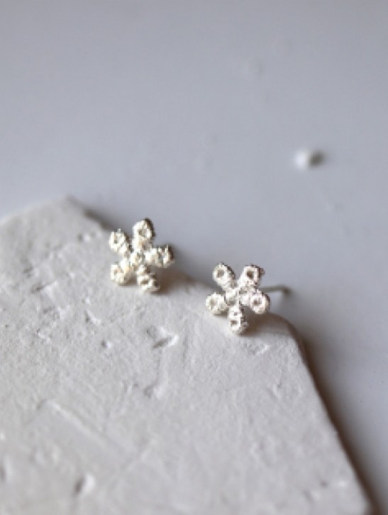• 레이스 메탈 기법으로 만들어진 실버 소재의 플로럴 버즈