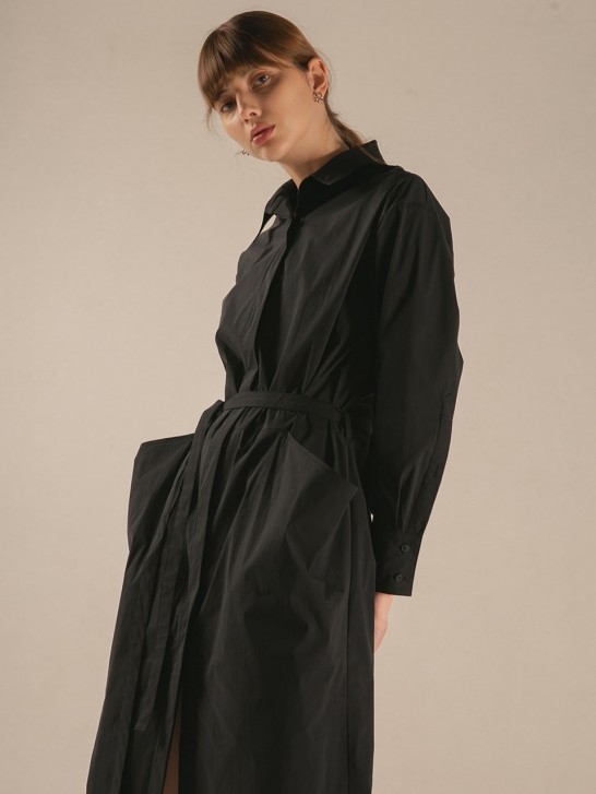 • 드레이프된 포켓라인이 우아한 무드를 연출하는 셔츠 드레스 입니다.