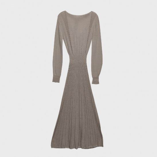 • 유아네이비 V Back Pleats Kint Dress - Grayish Beige URNAVY