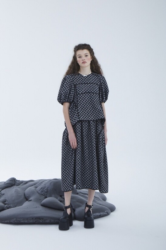 • 퍼프 소매와 라인 포인트 디테일을 강조하고 양옆 절개 포인트로 유니크함을 더한 블라우스