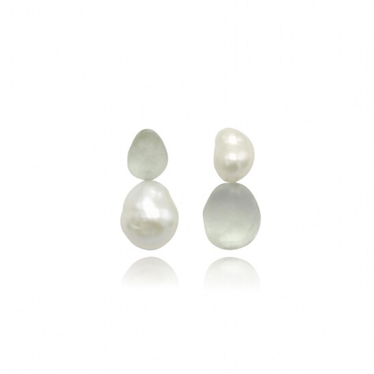 • 진주 형태를 본 떠 만든 원석 장식과 진주를 연결한 귀걸이
