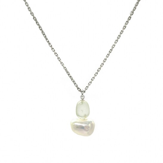 • 비정형적인 진주와 원석 펜던트의 925실버 목걸이