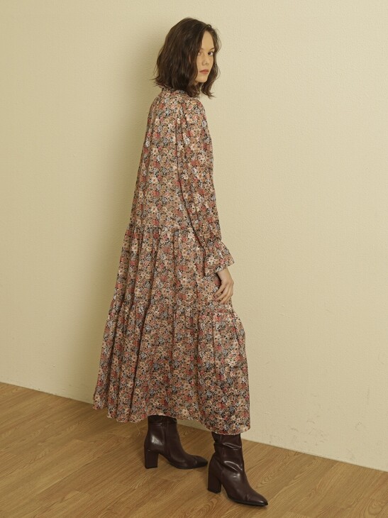 • 자가드 원단뒤에 또한번 꽃프린드를 얹은 오묘한 시스루 느낌의 로맨틱한 원피스