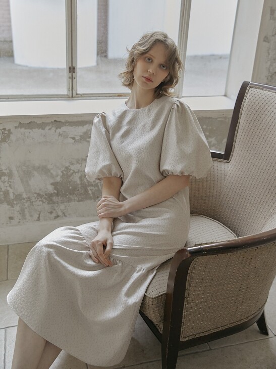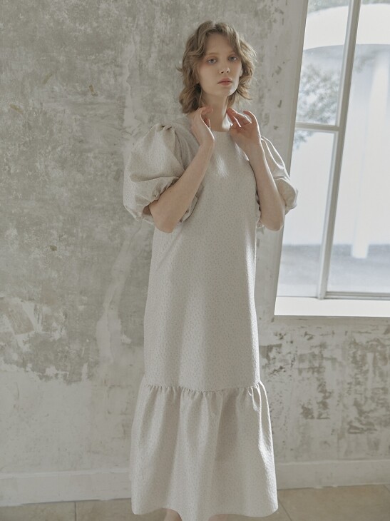 • 잔잔한 꽃송이 자가드 소재 에이라인의 페미닌 무드 원피스
