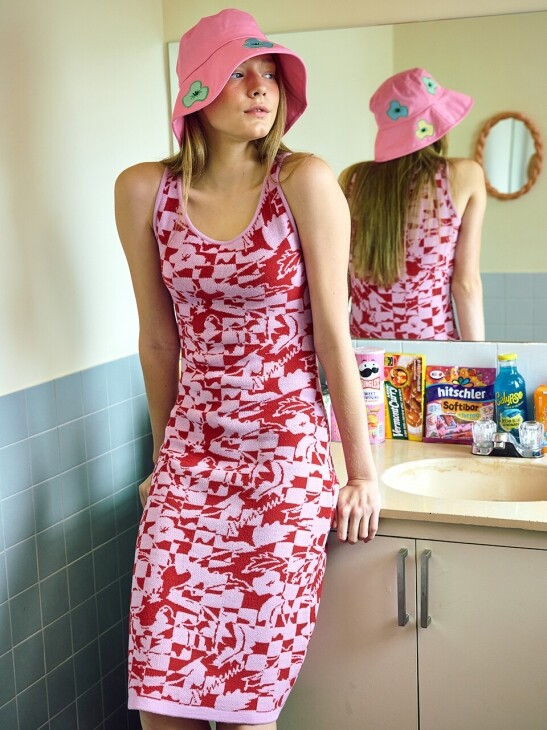 • 미미카위 WILD CHECKERBOARD KNIT DRESS/PINK