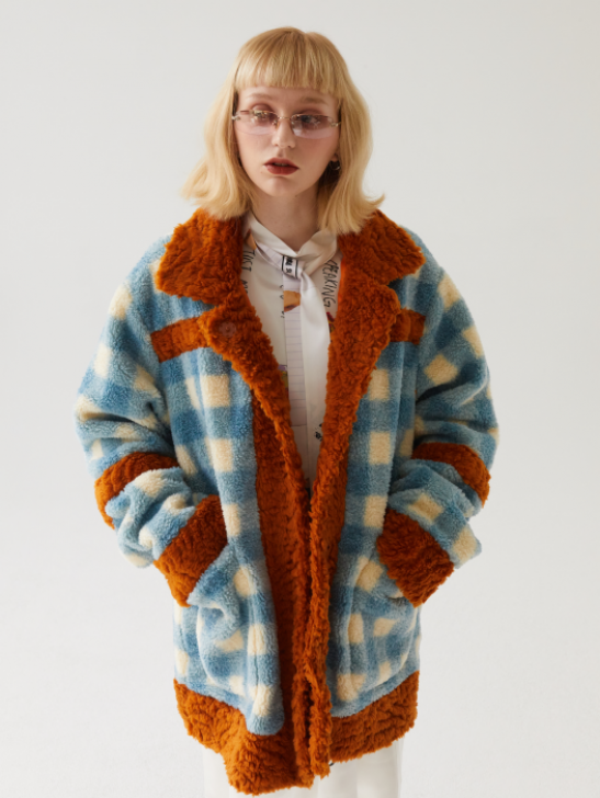 • 라펠과 몸체의 배색이 예쁜 비건퍼 코트