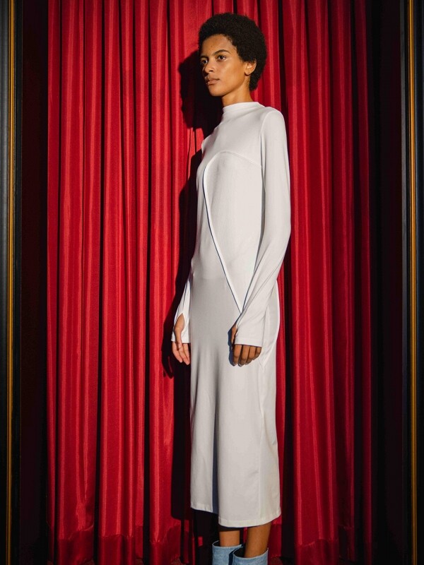• 구조적인 실루엣이 매력적인 원피스 제품입니다. 레이스가 트리밍되어 페미닌한 분위기를 연출하면서도 디자인적으로 아방가르드한 느낌을 줍니다.