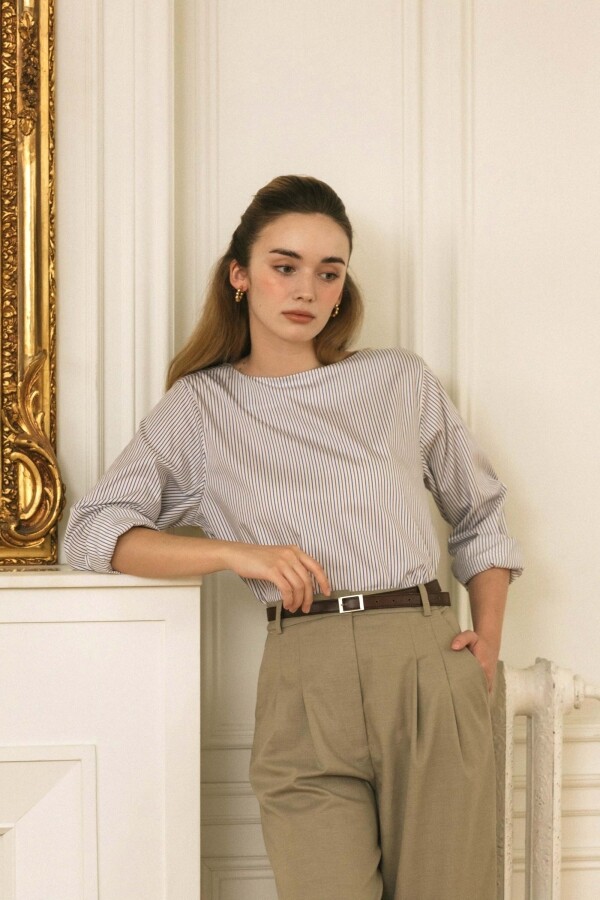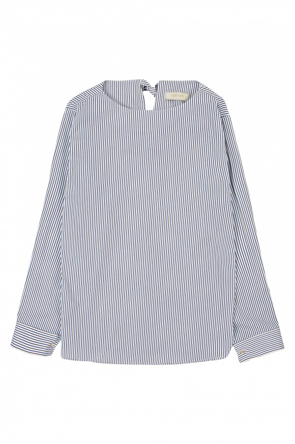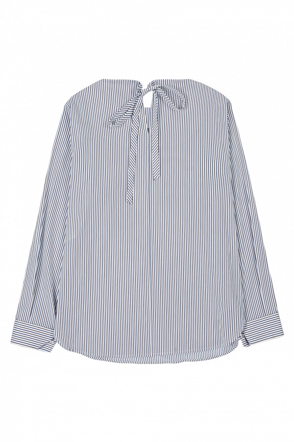 • 심플하면서도 러블리한 백리본을 포인트로 한 보트넥 블라우스입니다. 이태리 3대 명품 셔츠 원단 브랜드인 Canclini의 원단을 사용하였습니다. 국내 원단에서는 느끼기 어려운 우아하면서도 유니크한 발색감을 느끼실 수 있습니다. 두가지 색상의 스트라이프 컬러가 어우러져 차분하면서도 유니크한 디자인이 특징입니다. 뒷면에 위치한 리본은 자연스럽게 풀어서 연출하거나 묶어서 러블리하게 연출 가능합니다.