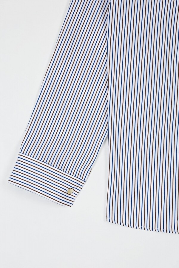 • 은은하게 보이는 로프 디테일이 특징인 스트라이프 셔츠입니다. 이태리 3대 명품 셔츠 원단 브랜드인 Canclini의 원단을 사용하였습니다. OEKO-TEX 인증을 받은 코튼 원단으로, 환경과 인체에 무해한 지속가능한 원단입니다. 앞판과 소매에 사용 된 단추는 최고급 천연 자개 단추로 각도에 따라 다양한 색을 담아내, 전체적인 룩에 포인트를 더합니다.