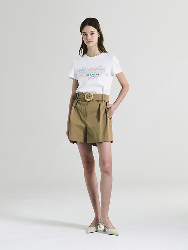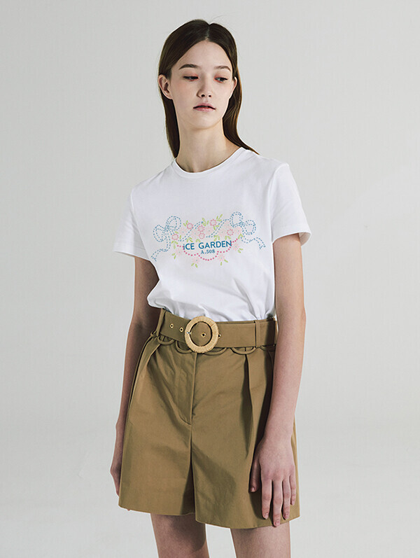 • 플로럴 프린트와 크리스털 스톤이 돋보이는 반팔 티셔츠