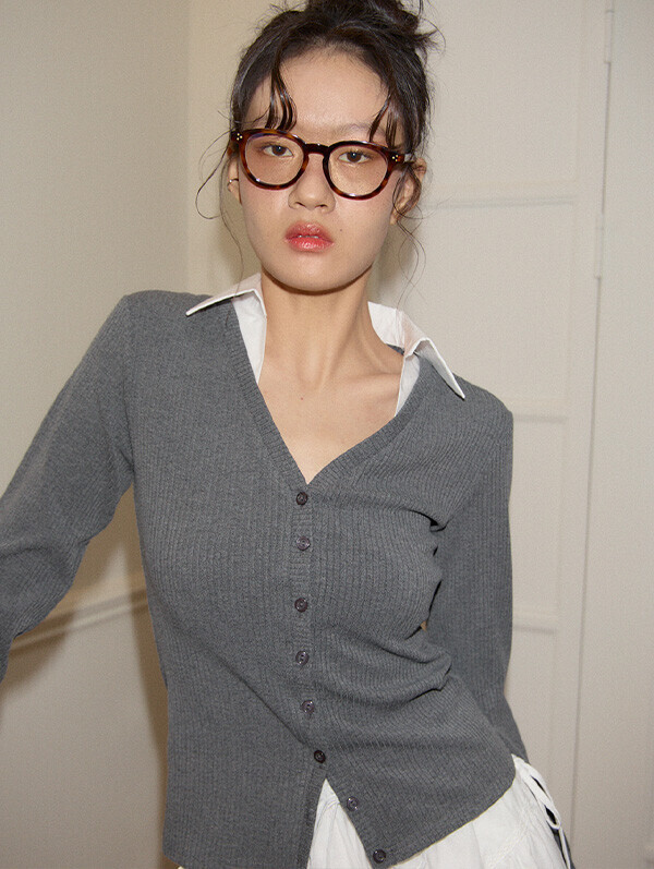 • 살롱드욘 Shirt Detail Cardigan_ Gray SALON DE YOHN