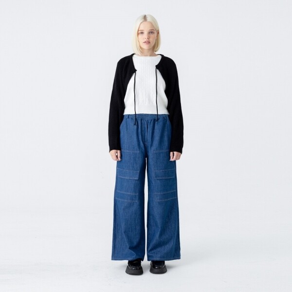 • 분더가이스트 허리밴딩 중청데님 카고와이드팬츠 WUNDERGEIST