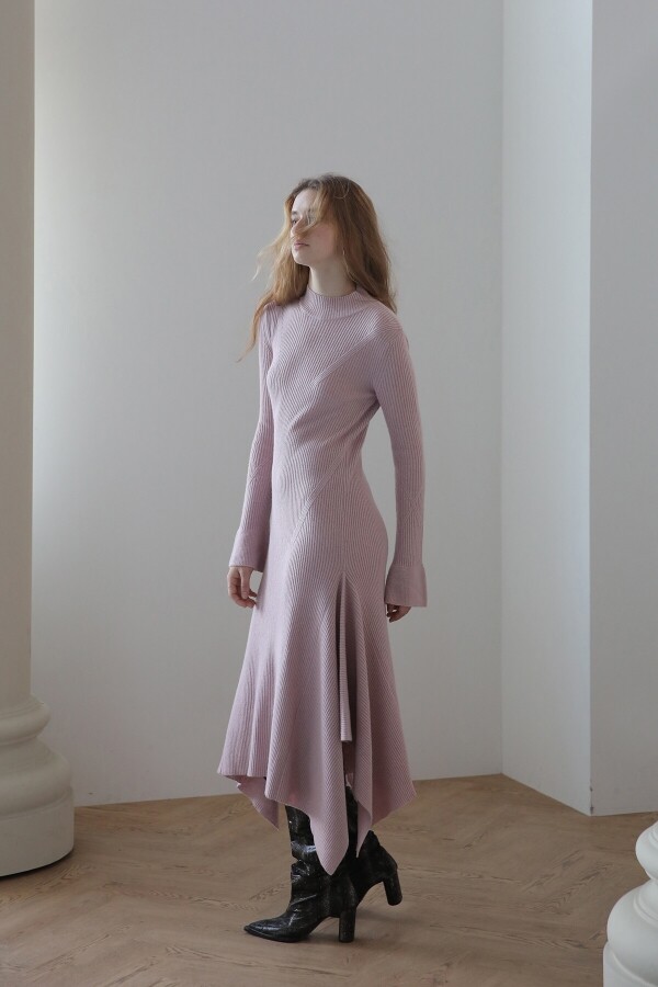• 까이에 슬림핏 언밸런스 롱 니트 원피스_핑크 CAHIERS