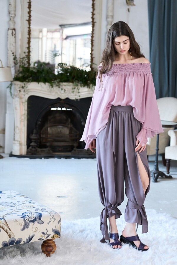 • 까이에 절개 포인트 리본 팬츠_그레이 CAHIERS