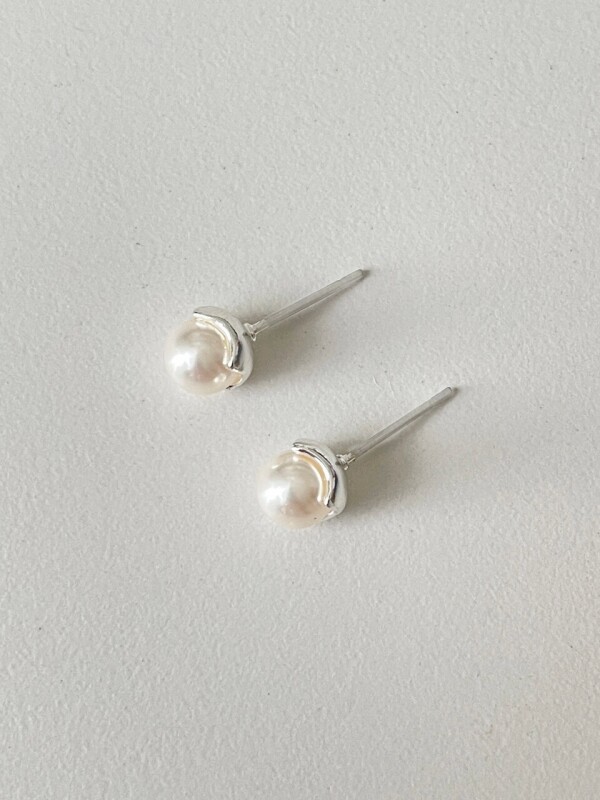 • ELYONA Light Back Pearl Earrings 데일리 부담 없는 6mm 진주귀걸이 (Gold/Silver)