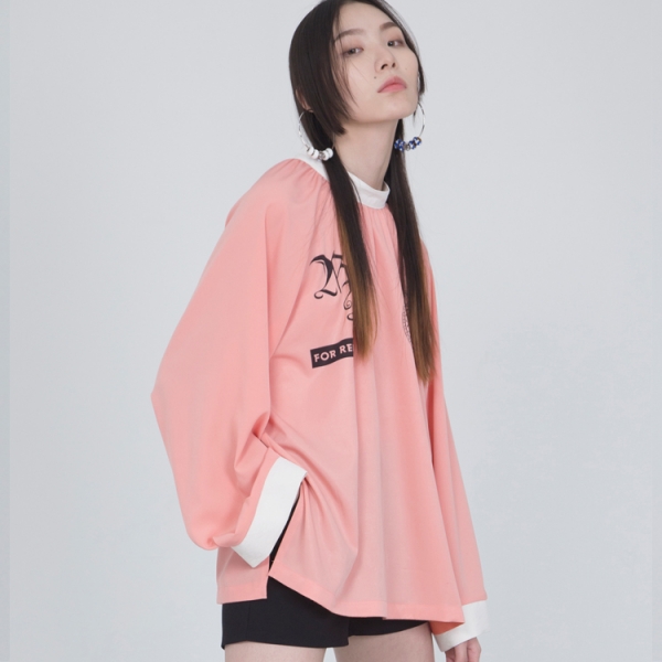 핸드페인팅 느낌의 프린트가 들어간 래글런 맨투맨