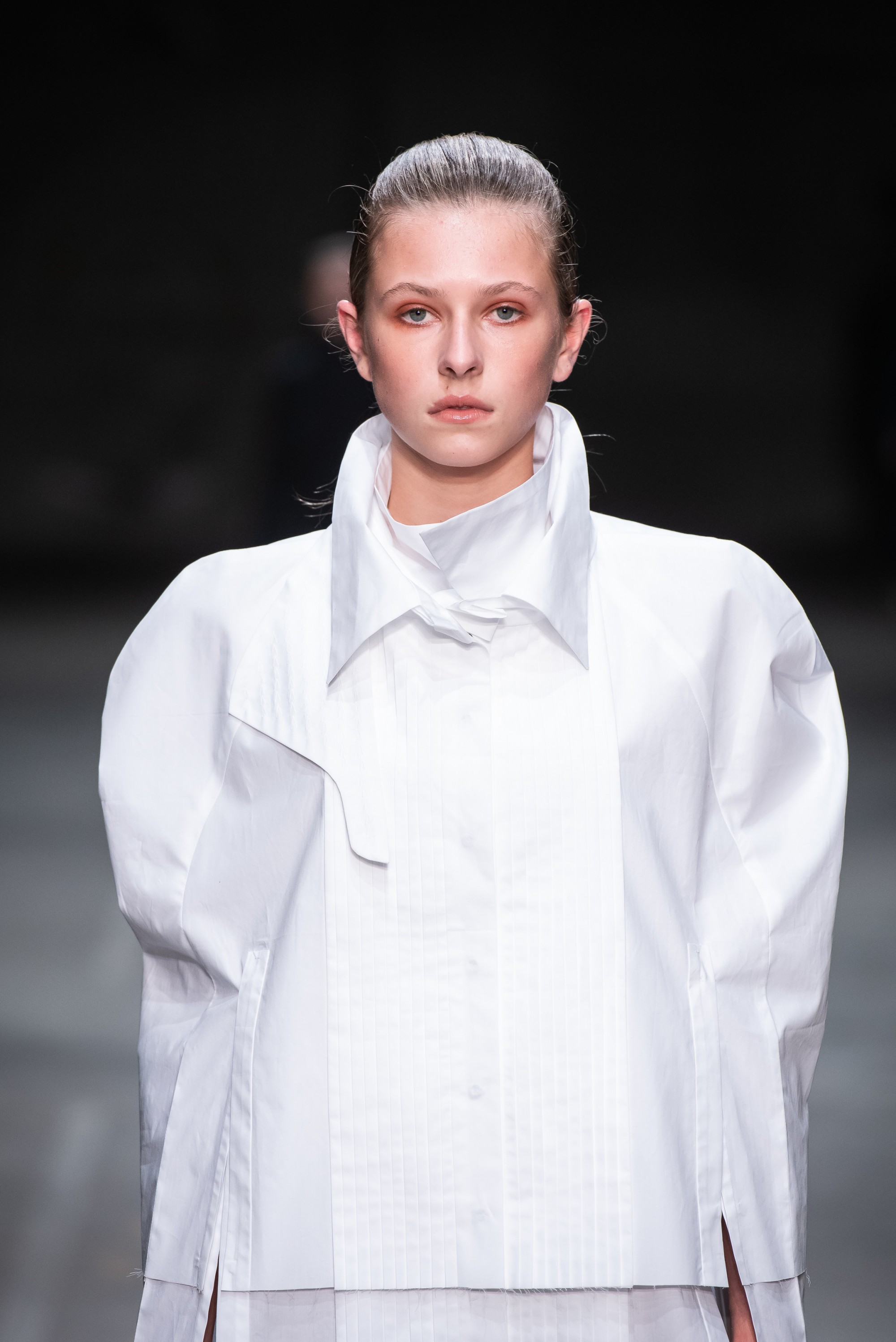 The shirtdress collection of HAESUNG BONG is a style of women’s dress that variates details from men’s dress shirts.