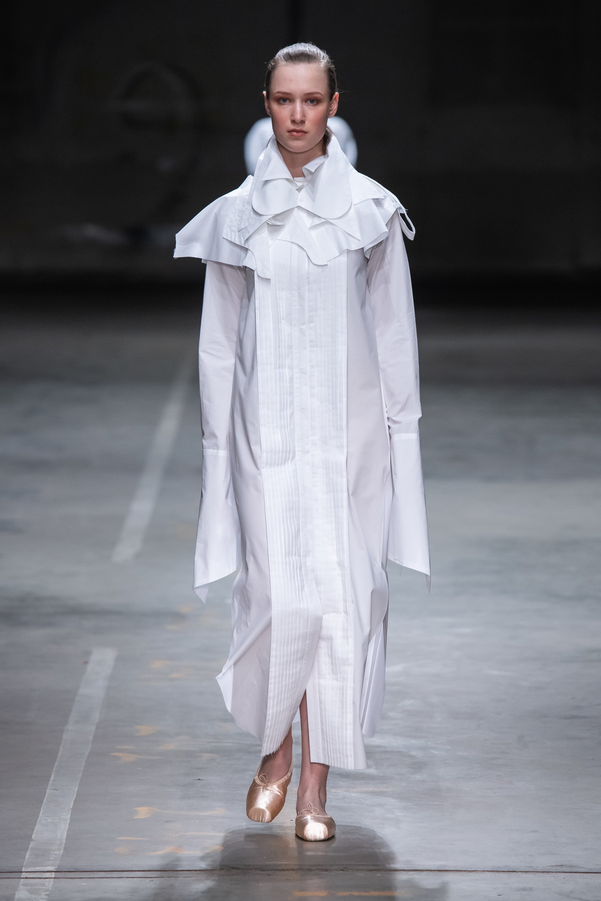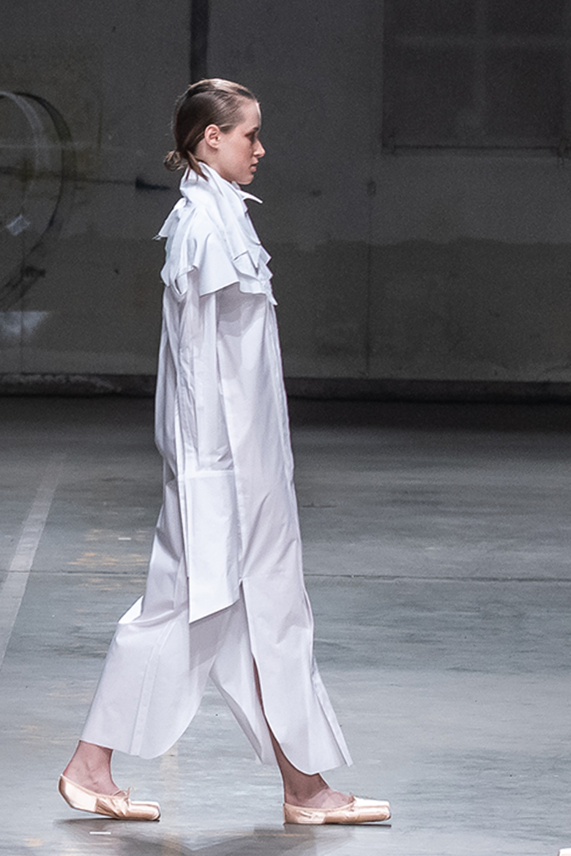 The shirtdress collection of HAESUNG BONG is a style of women’s dress that variates details from men’s dress shirts.