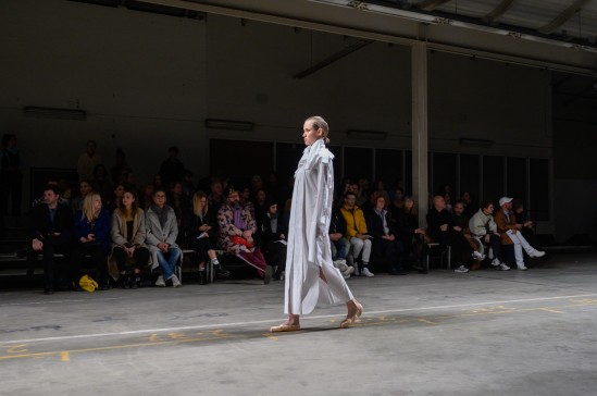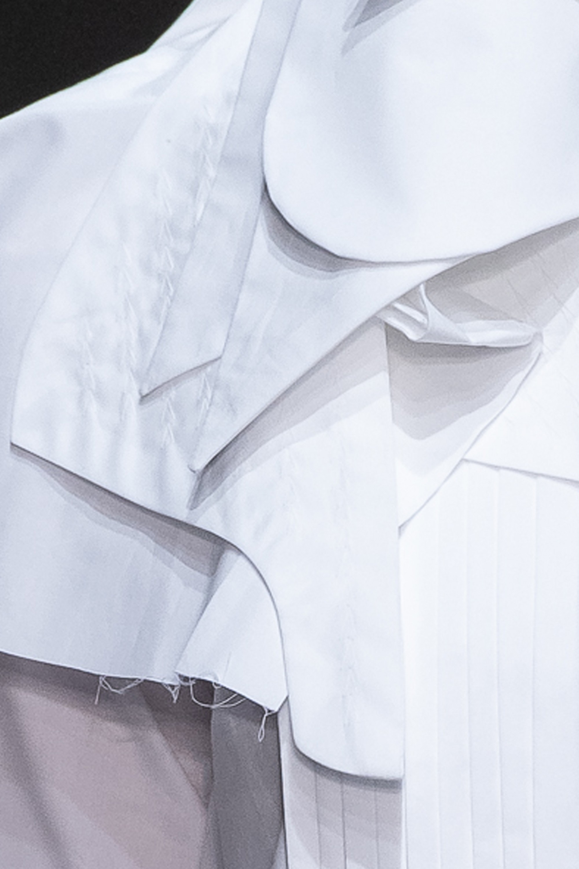 His designs exhibit visualized concepts, artisanal textiles, and structural silhouettes.