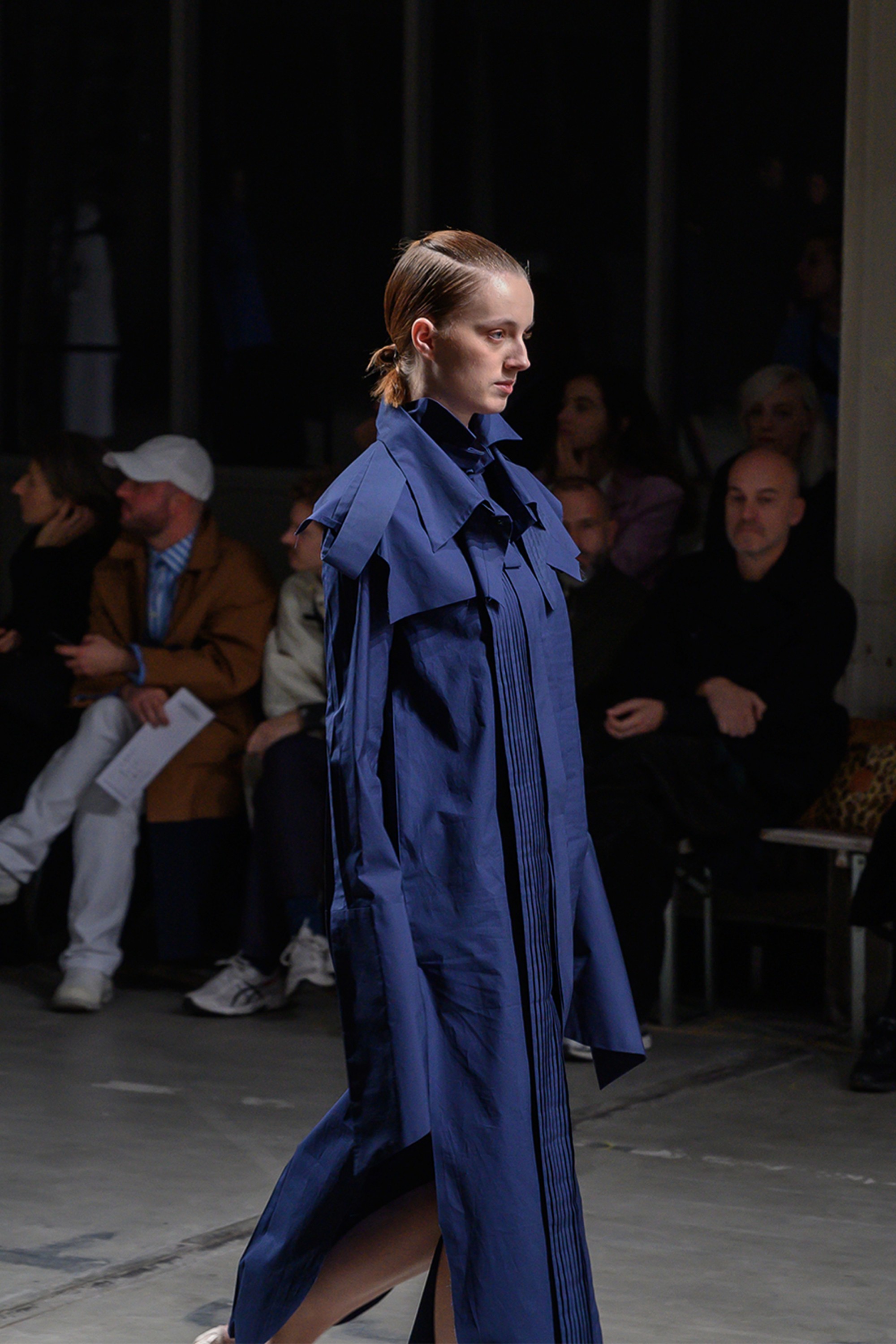 His designs exhibit visualized concepts, artisanal textiles, and structural silhouettes.