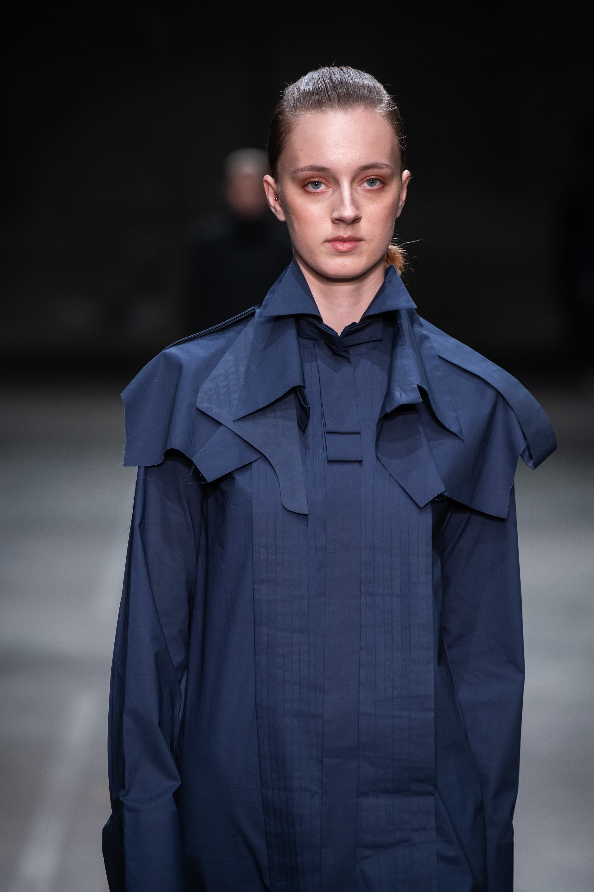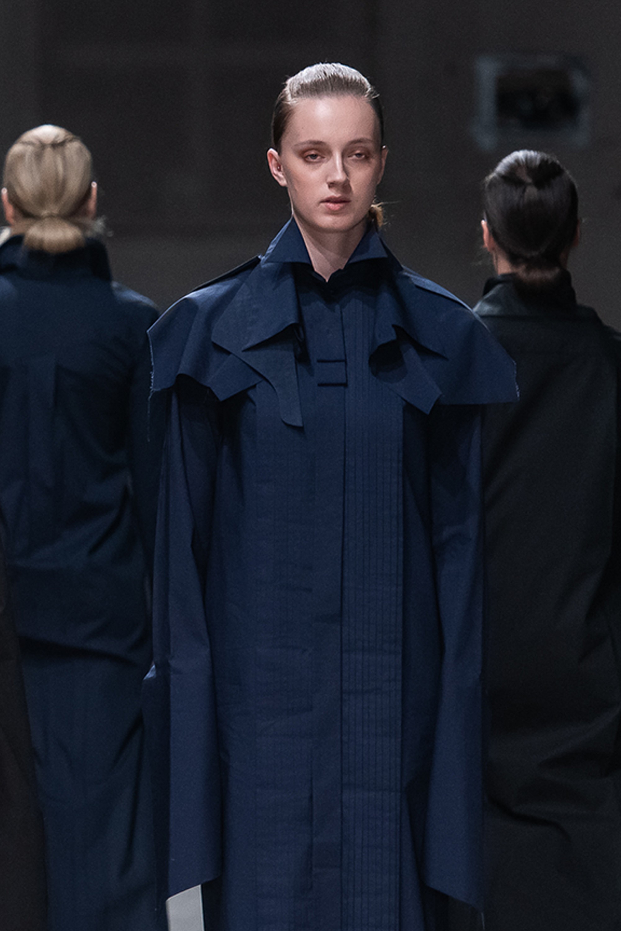 The shirtdress collection of HAESUNG BONG is a style of women’s dress that variates details from men’s dress shirts.