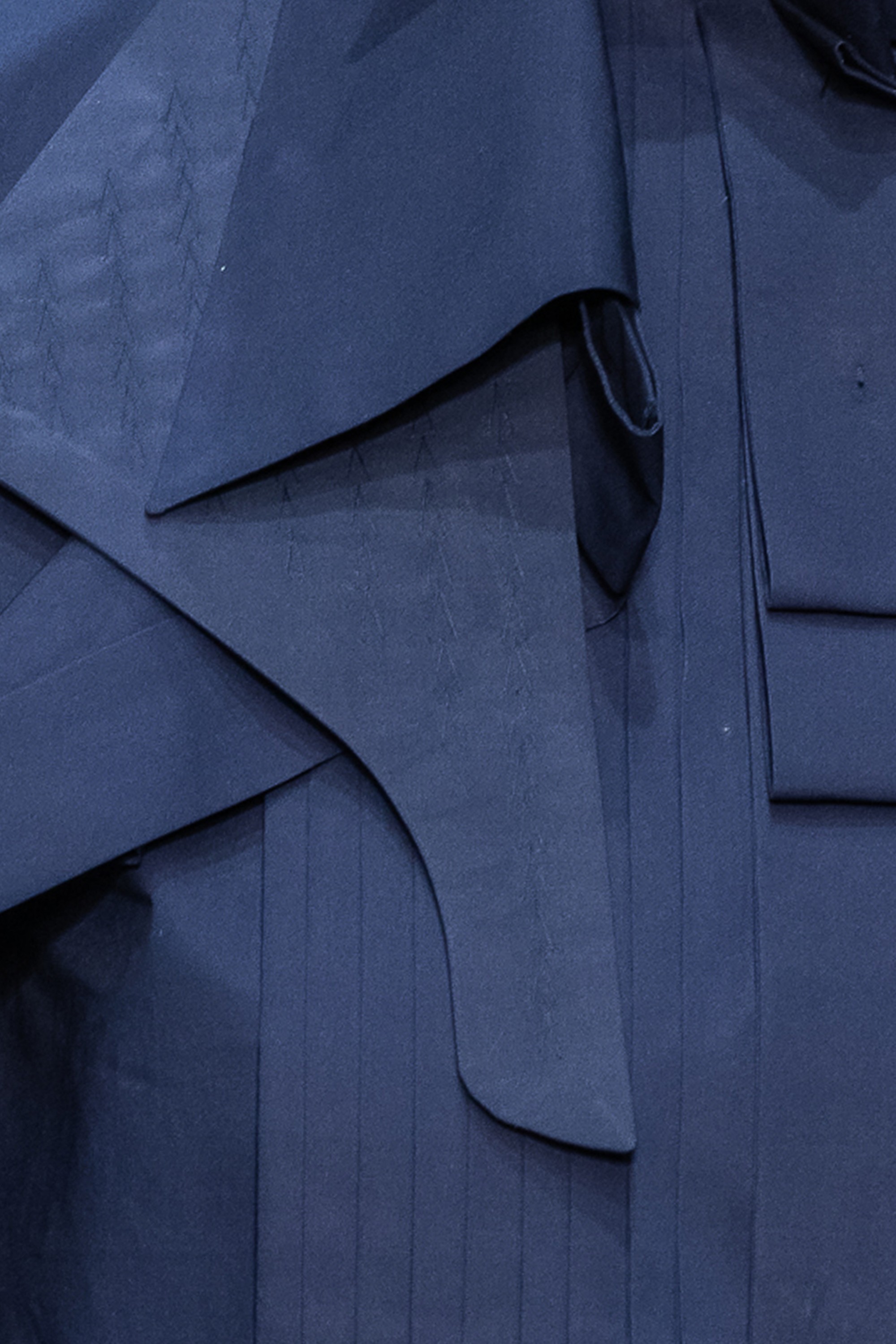 칼라, 앞여밈, 커프스, 소매 주름, 밑 단 등의 매혹적인 커팅이 특징입니다.
