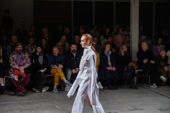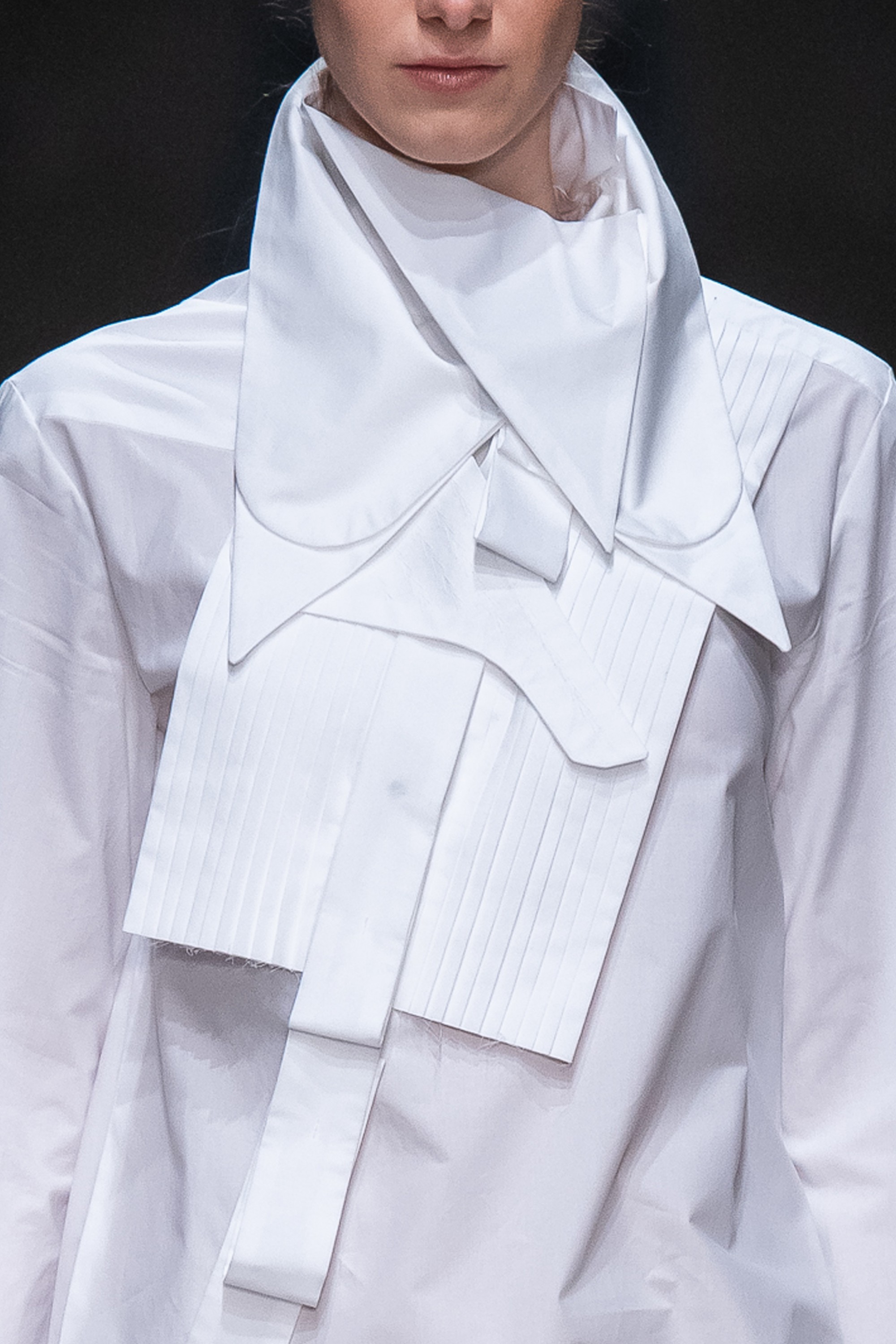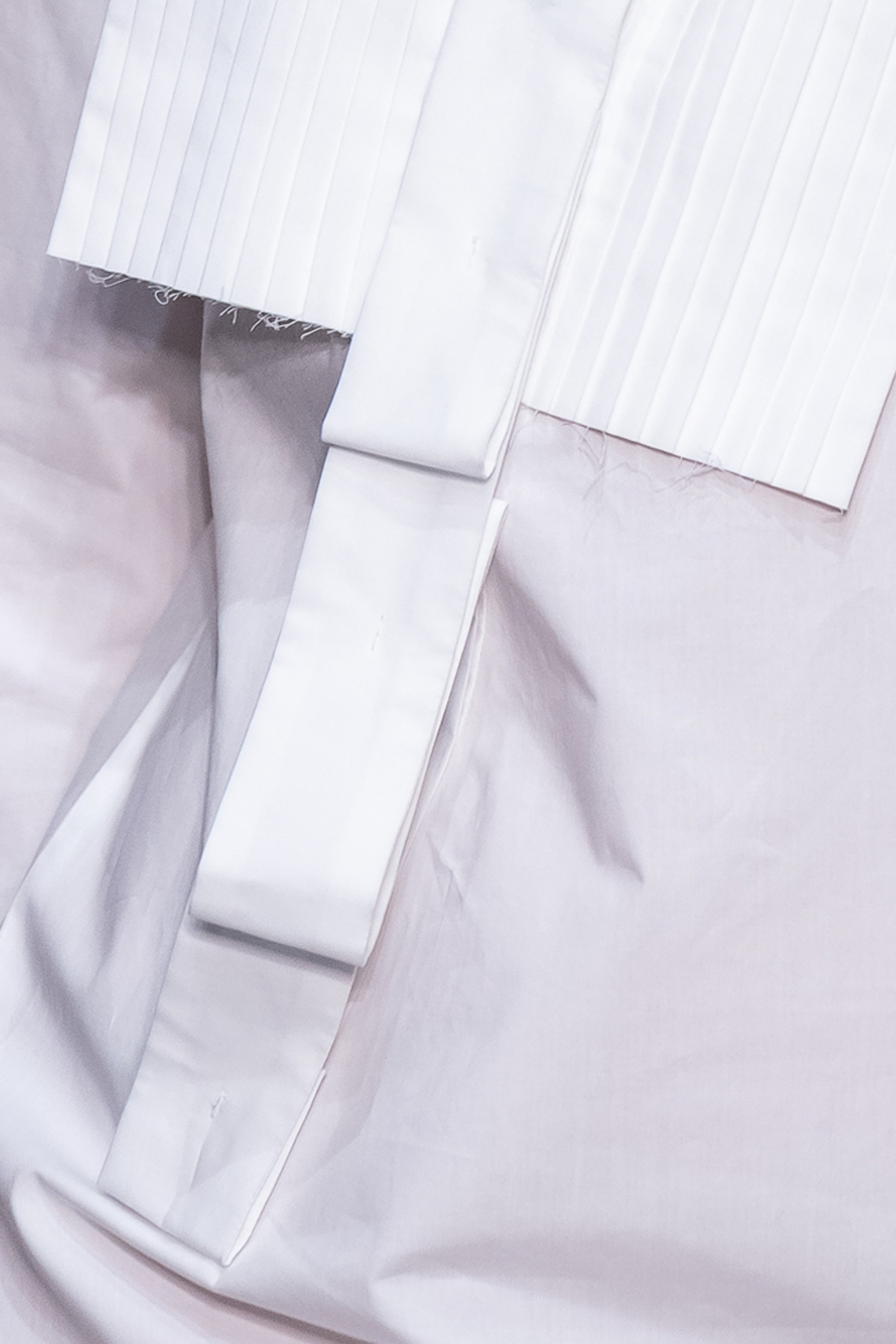 The shirtdress collection of HAESUNG BONG is a style of women’s dress that variates details from men’s dress shirts.