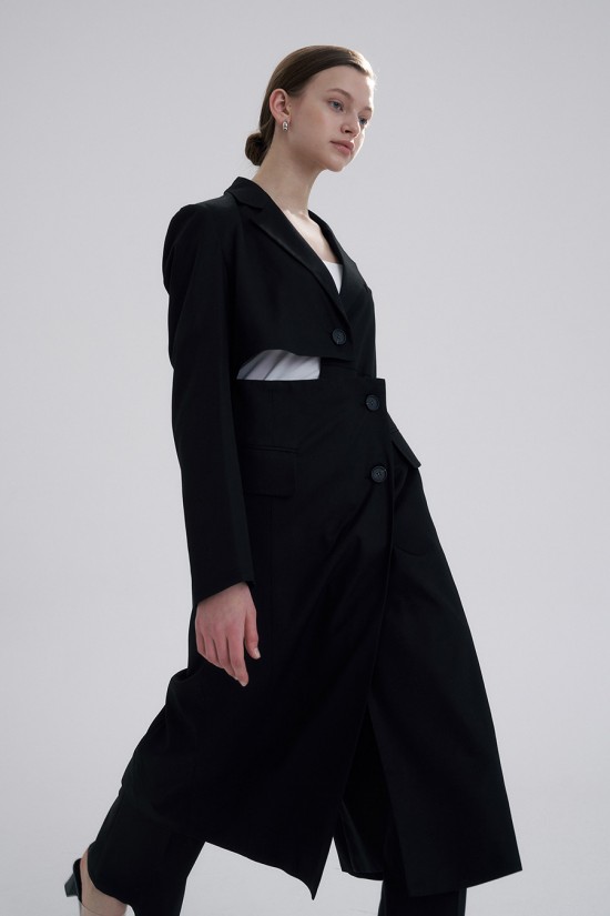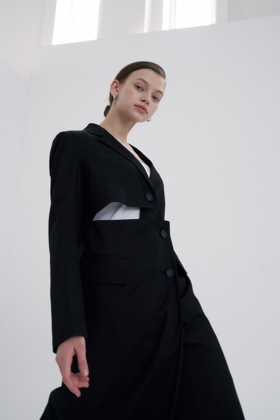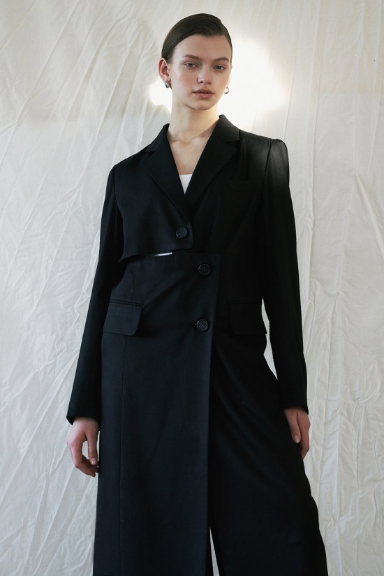 언발런스한 연출이 가능하며, 싱글 여밈으로도 다양한 연출이 가능한 매력적인 제품입니다.