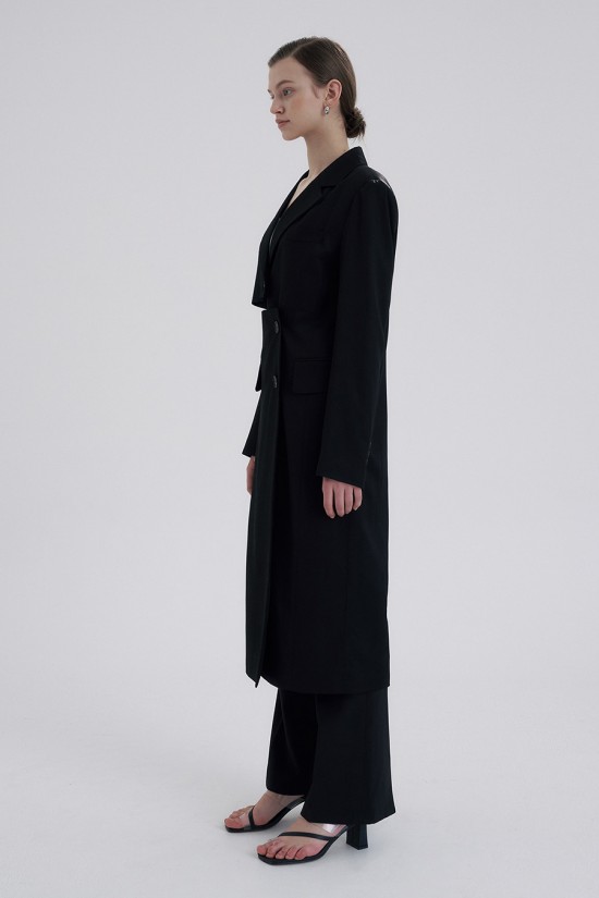 뱀부 소재로 디자인된 롱 자켓 입니다.