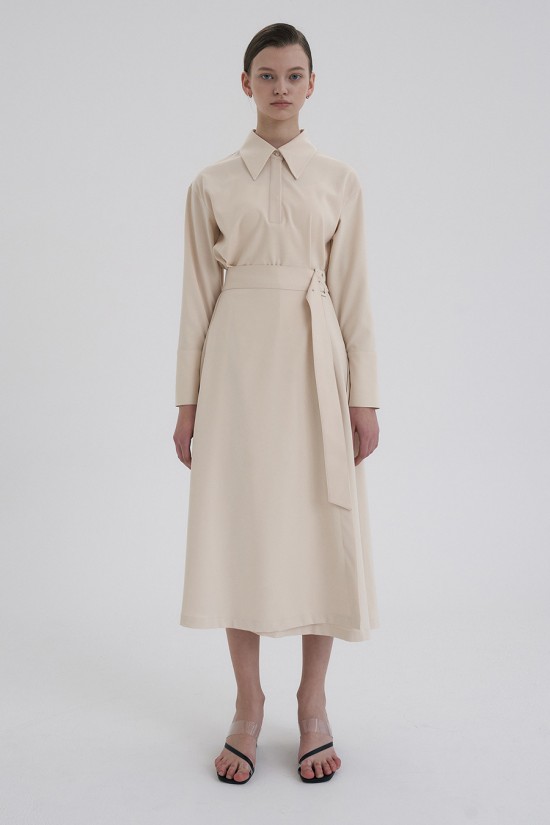 허리 라인이 스트랩되는 랩 형식의 드레스 입니다.