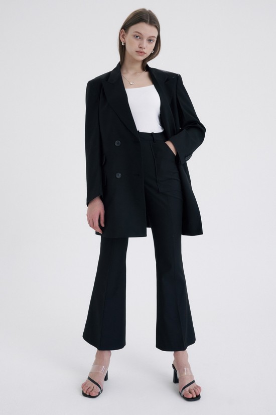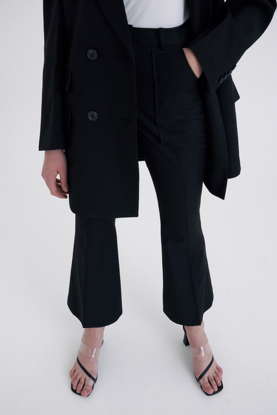 전체적으로 절개선을 따라 더해진 스티치 포인트가 특징적인 부츠컷 트라우저 입니다.