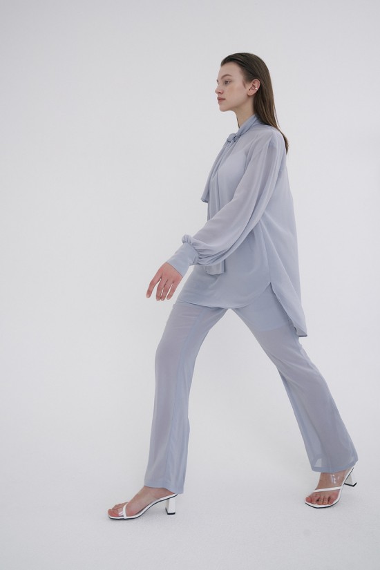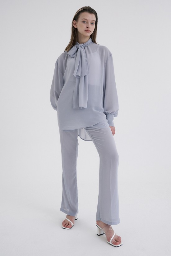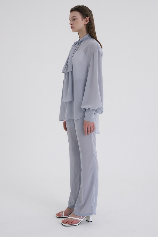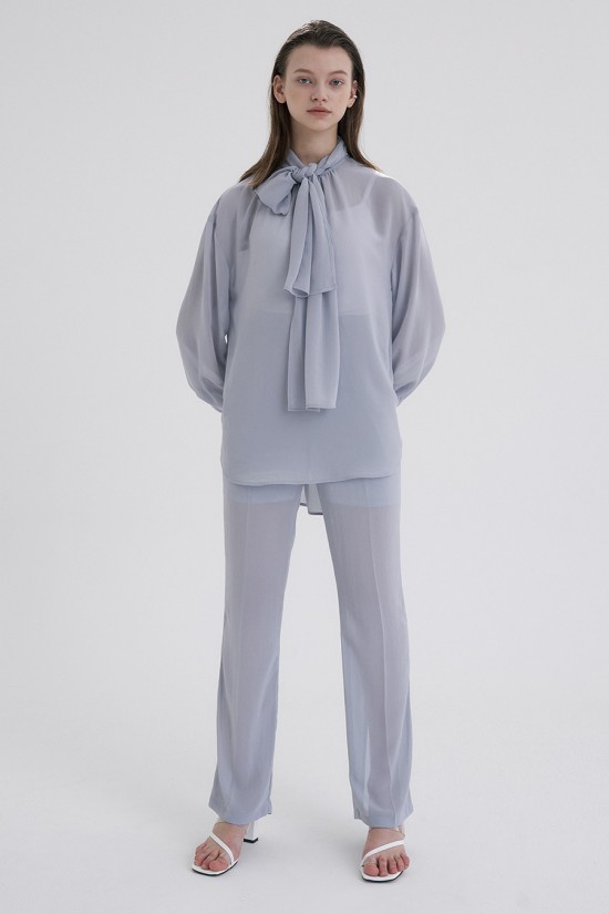 전체적으로 슬림하게 떨어지는 실루엣의 실키쉬폰 팬츠 입니다.