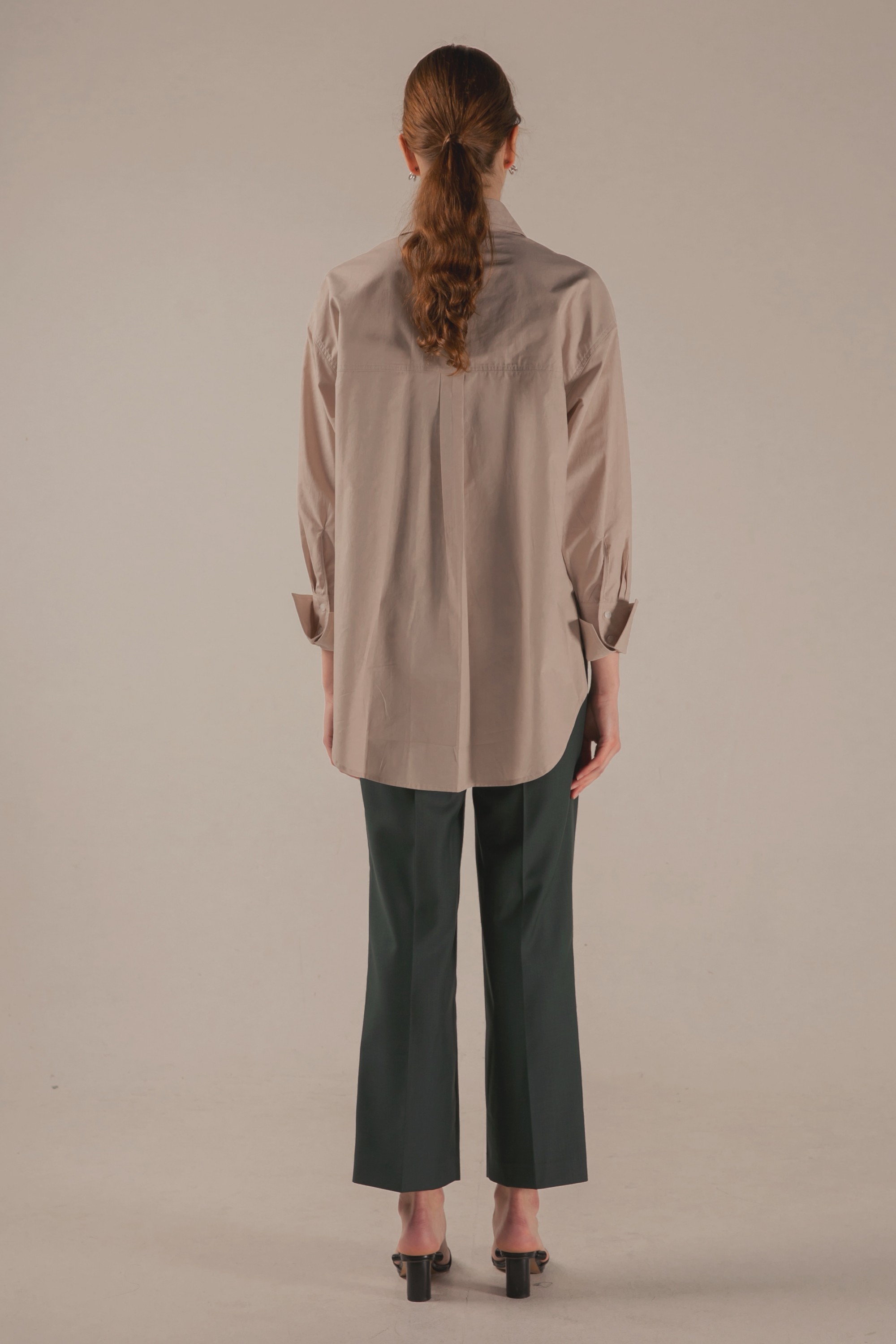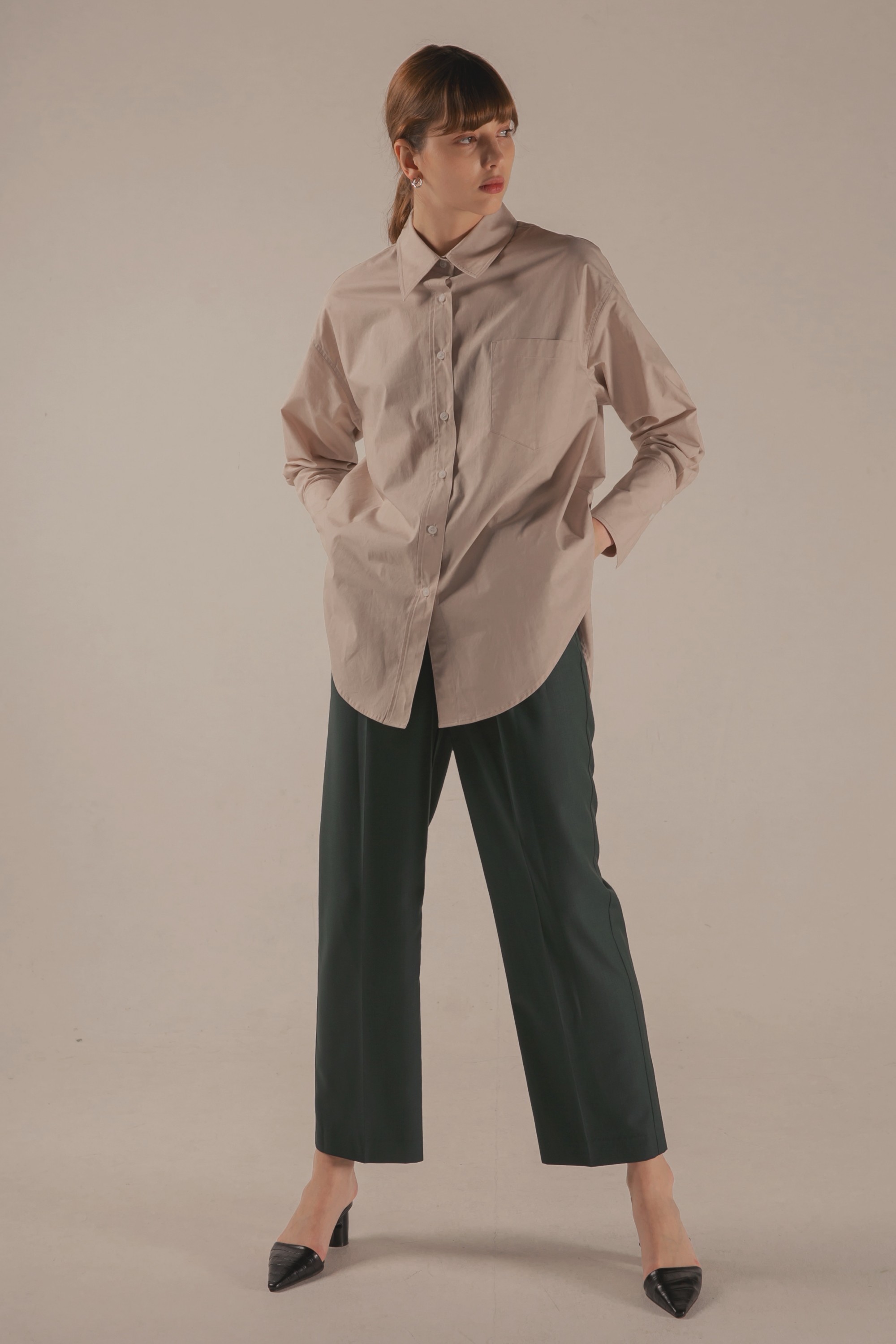 앞면의 턱 디테일을 넣어 볼륨감을 더하였으며, 전체적으로 루즈한 핏의 팬츠입니다.