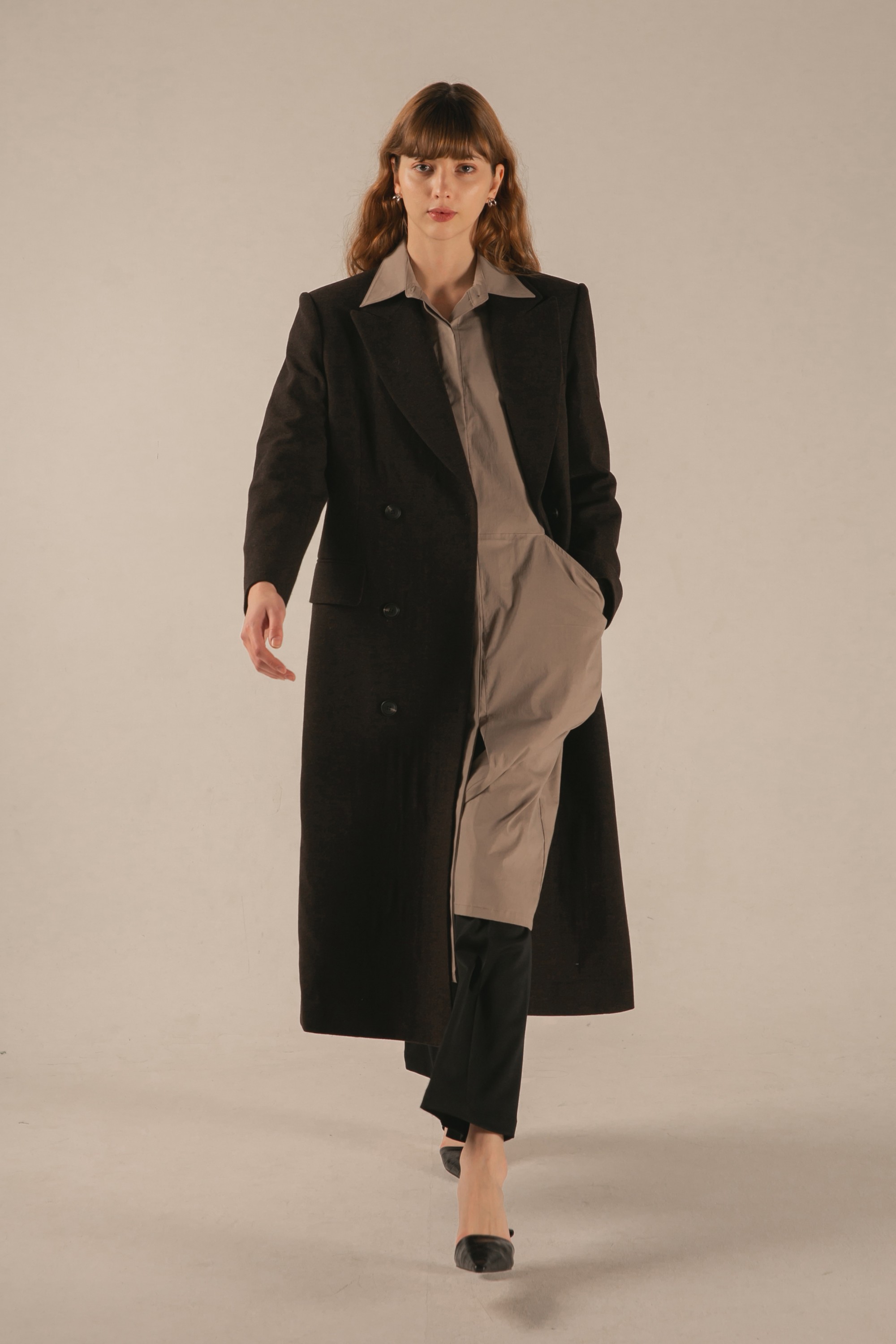 릴랙스한 무드의 여유로운 핏으로 허리 스트랩을 묶어 실루엣 연출이 가능합니다.