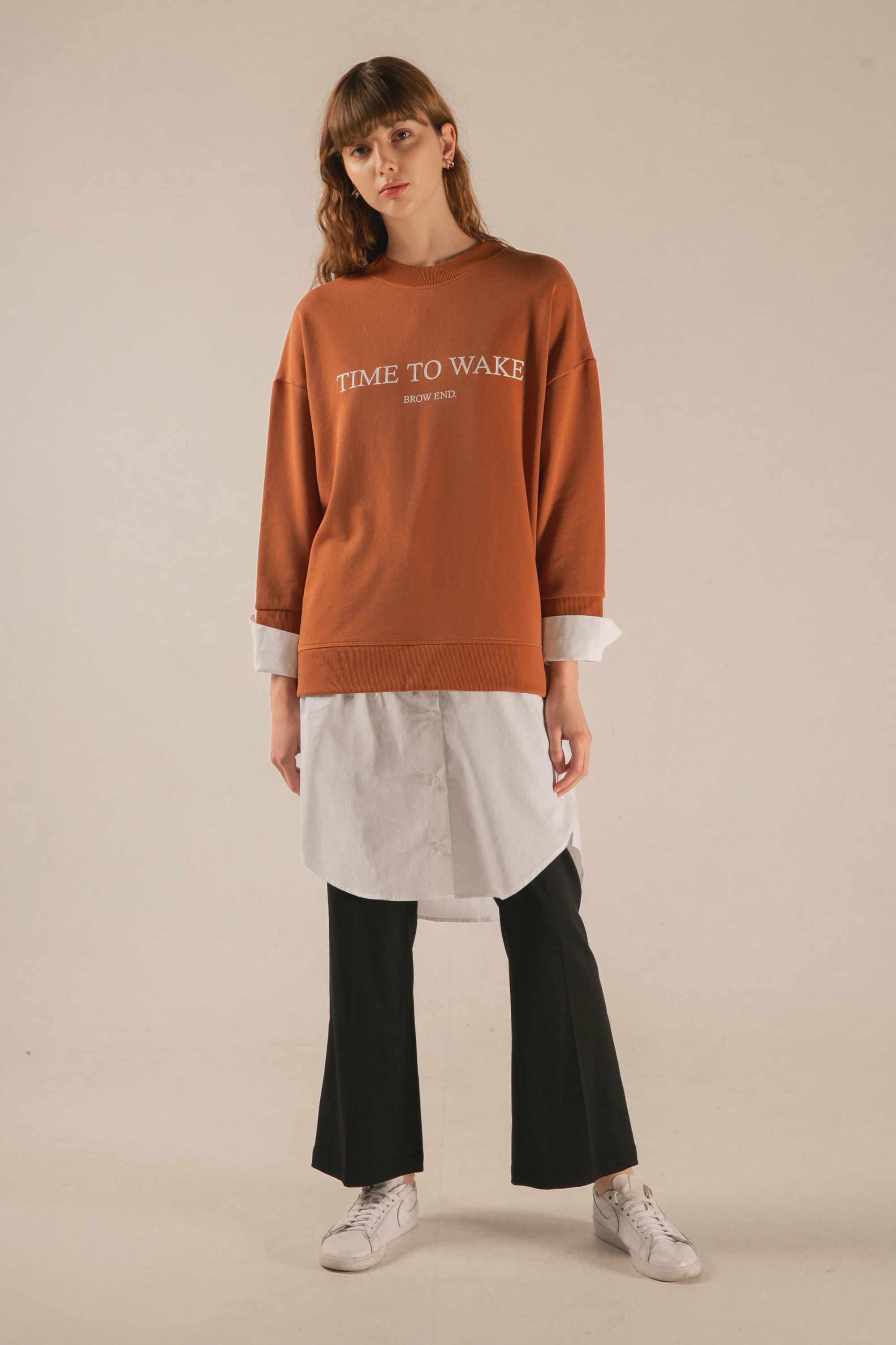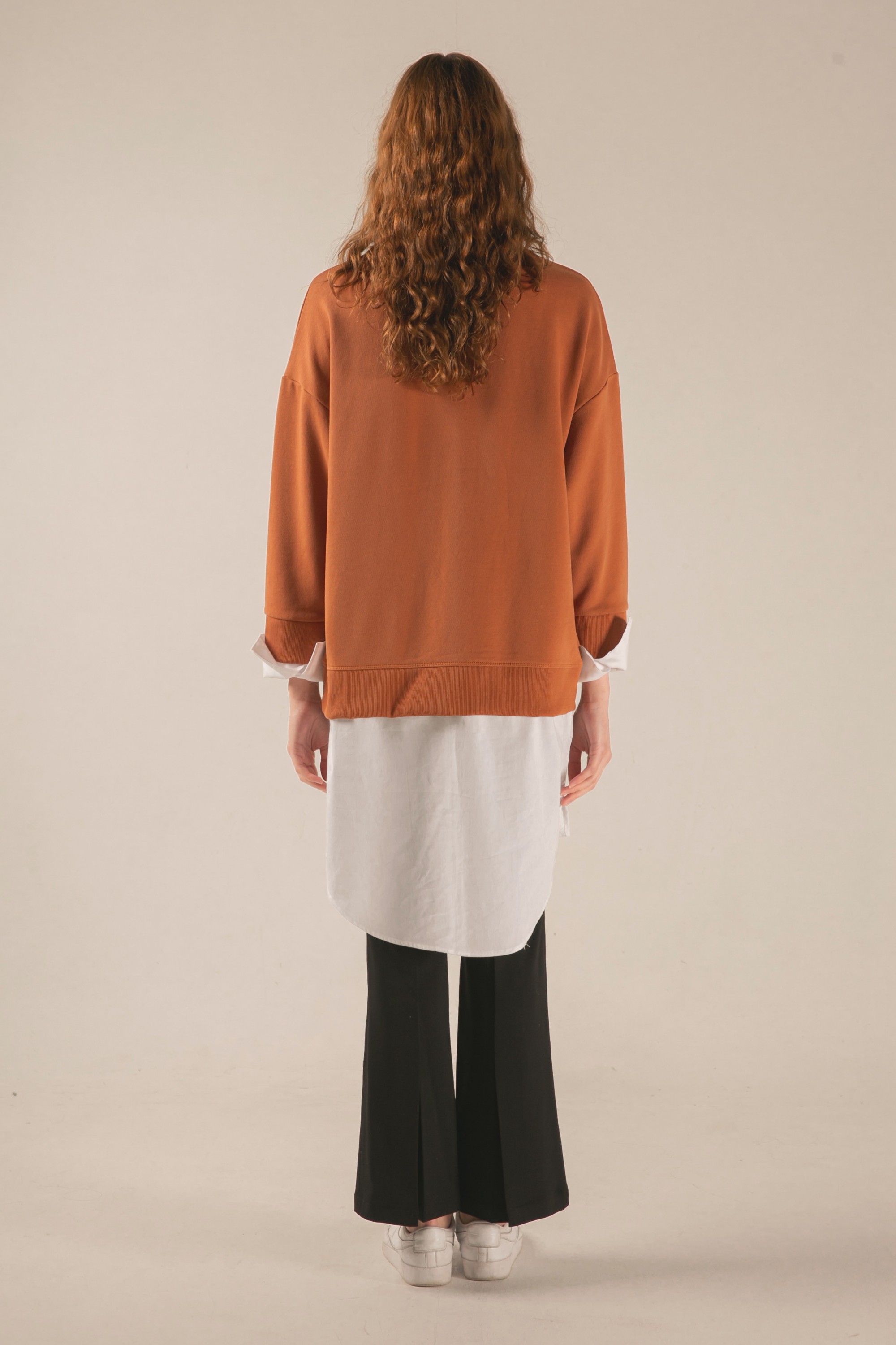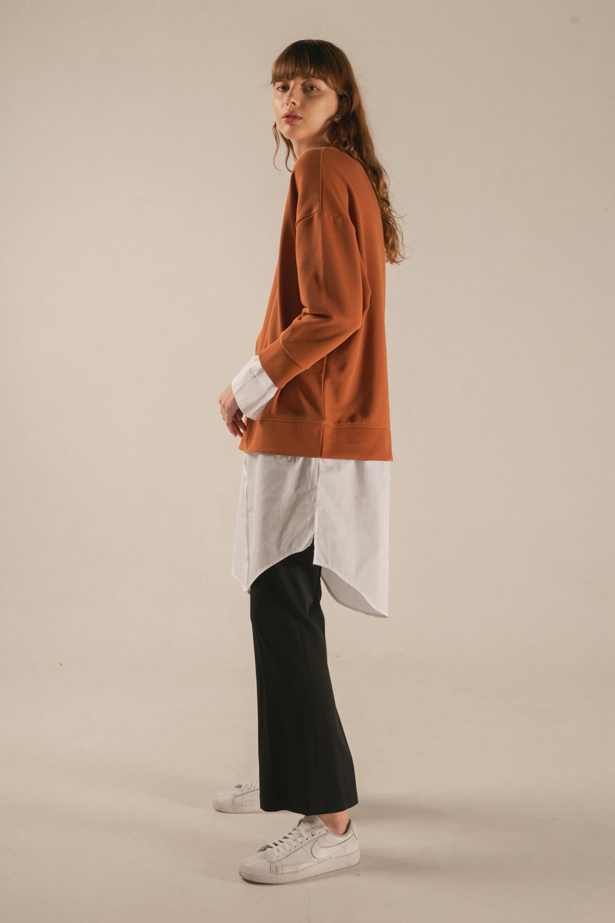 베이직한 스웻셔츠에 셔츠가 덧대어진 디자인 입니다.