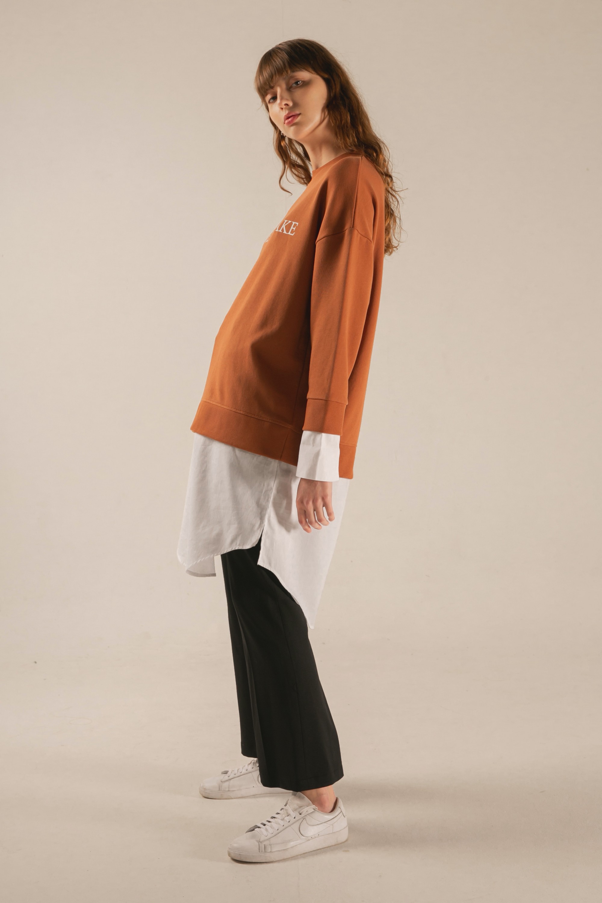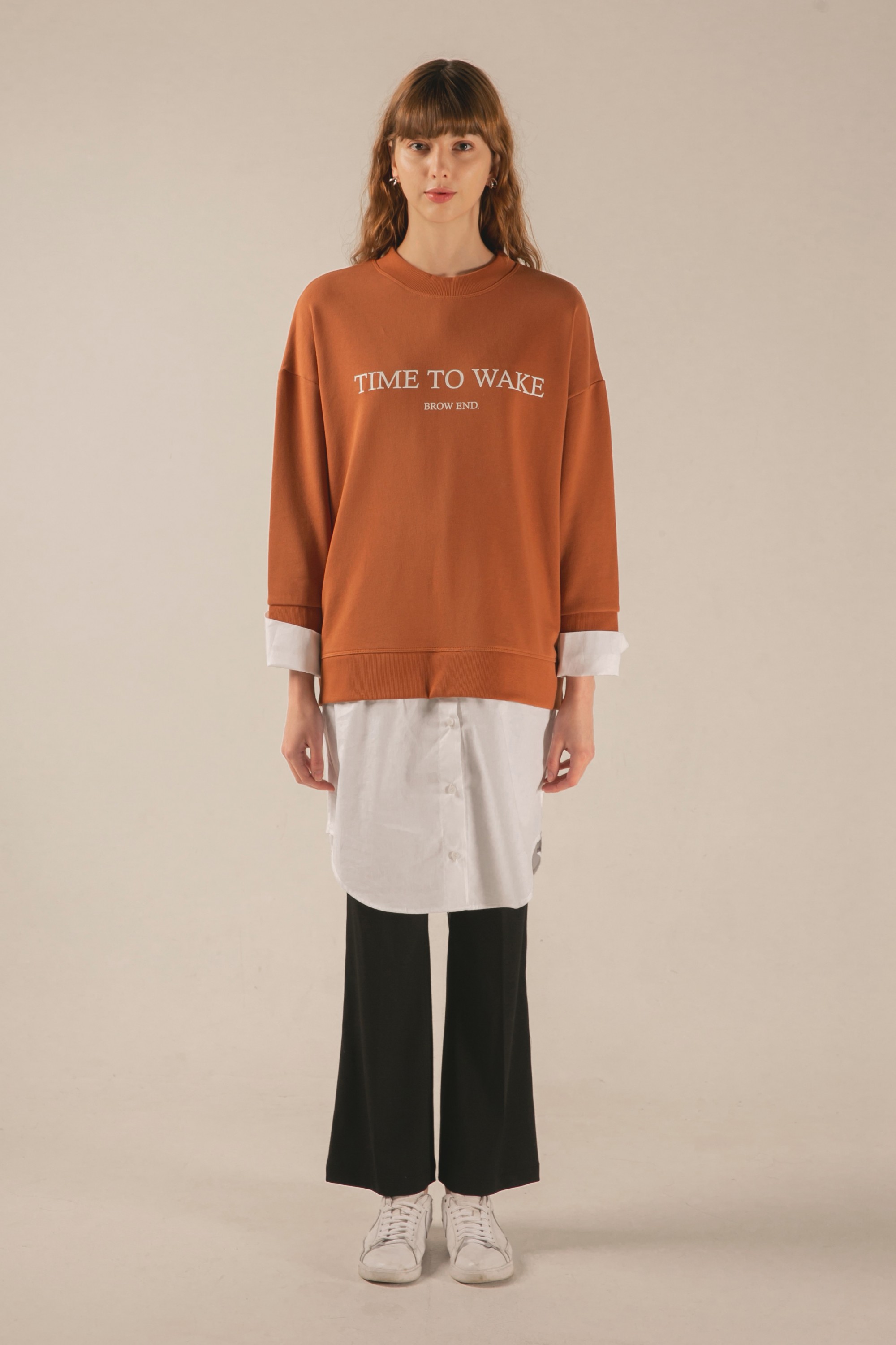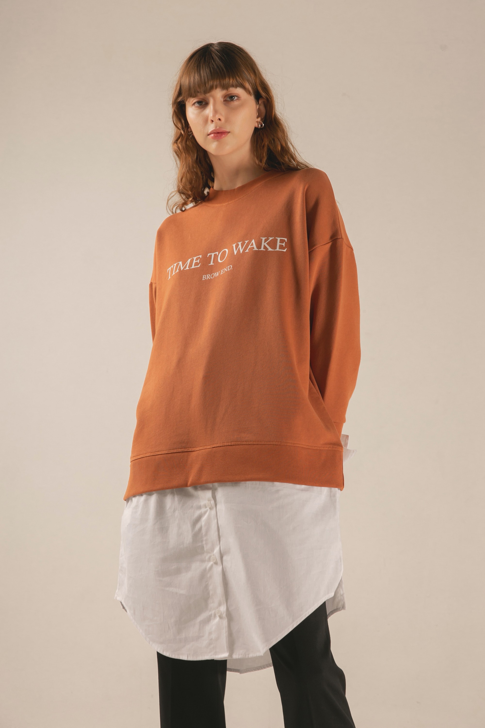 베이직한 스웻셔츠에 셔츠가 덧대어진 디자인 입니다.