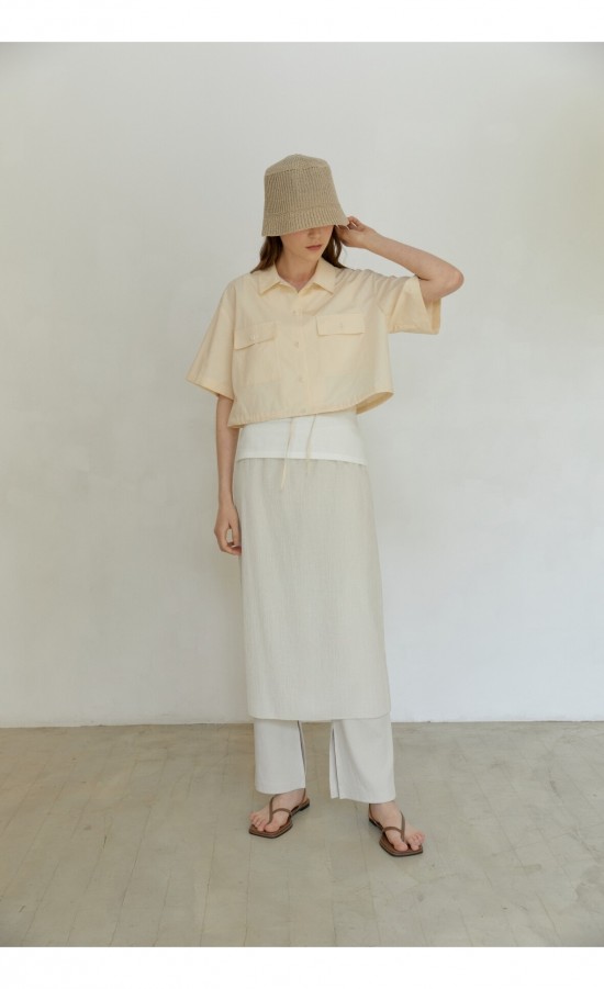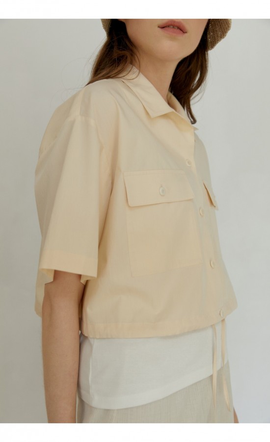 아웃 포켓이 포인트 된 크랍한 기장감의 아우터형 셔츠입니다