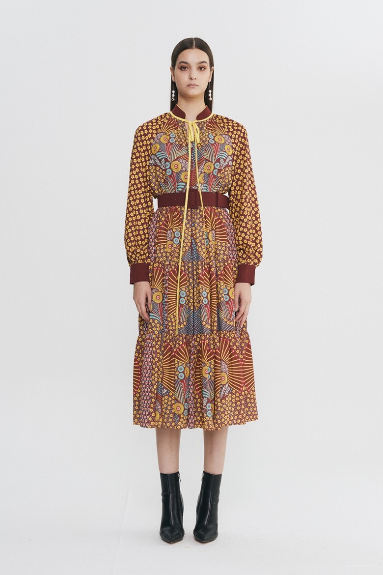 버건디 컬러 베이스에 옐로우 컬러의 잔잔한 꽃무늬 패턴과