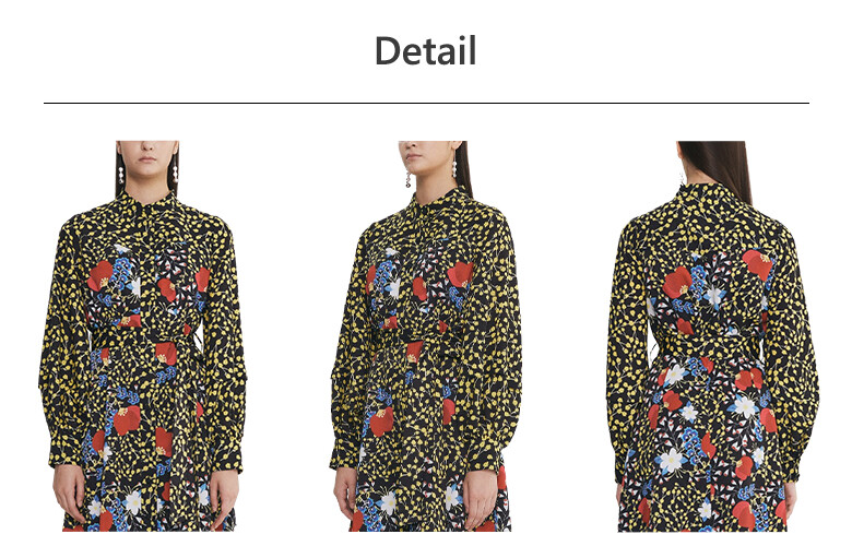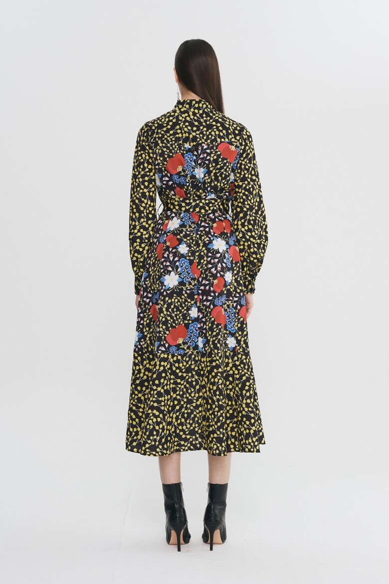 블랙 컬러 베이스에 옐로우의 잔잔한 꽃무늬와 레드, 블루 등